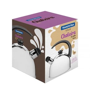 Chaleira Tramontina com Apito em Aço Inox Cabo Preto 2,1 L Feita de aço inox, por isso não solta nenhum resíduo nos alimentos, mantendo-os saudáveis. Altamente durável, mantém as características originais, preservando a beleza, a higiene e a durabilidade do material. Acabamento em alto brilho, valorizando o produto. Para uso doméstico. Com apito, avisa na hora em que a água estiver fervendo; o sistema de apito é acionado por meio do vapor no momento em que a água inicia a fervura na chaleira. Possui cabo de material especial, que não deixa o calor passar. Tampa com encaixe especial, que não deixa vazar e cair na hora de servir.Pode ser utilizada nos fogões: gás, elétrico e vitrocerâmico. Recomendações de uso Para o bom funcionamento do apito, encha a chaleira somente até o início do bico. Para servir, remova o apito. Na tampa da sua nova chaleira existe uma pequena flecha estampada. Para evitar que a tampa caia, alinhe a seta com a parte traseira do cabo antes de servir. Centralize bem a chaleira sobre a chama para evitar que os componentes sejam danificados. Para manter sua peça bonita recomenda-se lavar somente com detergente e esponja. Depois da lavagem, sempre que possível, enxágue o produto com água quente e seque-o imediatamente, para que se mantenha com o brilho original, pois o cloro e as substâncias contidas na água podem deixar manchas. Usando a máquina de lavar, recomendamos retirá-la logo que tenha terminado o ciclo ''enxaguar'', a fim de que a mesma seja secada manualmente.