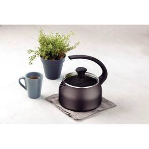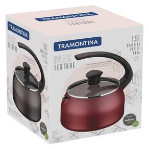 Chaleira Tramontina Paris Texture em Alumínio com Revestimento Interno e Externo Antiaderente Starflon Max Grafite 1,9 L Corpo de alumínio com espessura que proporciona cozimento rápido e uniforme. Revestimento interno e externo de antiaderente Starflon Max que não gruda, é fácil de limpar, mais durável e não é prejudicial a saúde.Tampa de vidro temperado e borda de aço inox.Cabo de baquelite antitérmico e pegador de nylon que oferecem segurança durante o manuseio. Pode ir à máquina de lavar louças facilitando seu dia a dia. Recomendações de uso Posicione os cabos dos utensílios voltados ao centro do fogão.Em fogões com grade, centralize a peça e alinhe o cabo com a grade. Utensílios quentes devem estar fora do alcance das crianças.Antes do primeiro uso, lave com esponja macia, sabão neutro ou detergente líquido. Depois de secar, unte a área interna com óleo ou gordura e leve ao fogo por um ou dois minutos. Deixe esfriar e lave novamente. Seu utensílio Starflon está pronto para uso com ou sem gordura, sempre em fogo baixo ou médio (nunca superior a 350ºC).Limpeza: Evite a imersão do utensílio quente em água fria. Nunca utilize produtos abrasivos na lavagem. Se deixar queimar alimentos, umedeça a área e reserve até que possa remover os resíduos grudados com esponja e sabão. Para descarte dos produtos e embalagens siga as orientações de reciclagem vigentes.