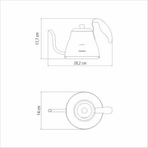 MEDIDAS Altura 17,7 cm Largura 14,0 cm Comprimento 28,2 cm Capacidade total 1,2 L Capacidade de uso 700 ml