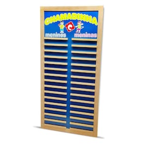 Chamadinha - Madeira - 1014 - Carlu Com a chamadinha fica muito mais fácil organizar a rotina em sala de aula, além de incentivar o aprendizado dos nomes. Confeccionada em M.D.F. Medindo 45 x 93 cm. Espaço para 30 nomes - 15 para os meninos e 15 para as meninas, pintada e serigrafada com tinta ultravioleta atóxica. Embalagem: Papelão. Idade: A partir de 3 anos. Ref.: 1014. Conteúdo da embalagem: 1 painel de madeira. Medidas do produto: C x A x L 45 x 93 x 2 cm. Medidas da embalagem: C x A x L 45 x 93 x 2 cm. Peso aproximado do produto: 2300 gramas. Embalagem: caixa de papelão. Prazo de garantia: 03 meses de garantia legal. Observe atentamente a idade recomendada para o brinquedo. Pode conter partes pequenas que podem ser engolidas e perigosas. Fotos ilustrativas as cores e modelos podem sofrer alterações sem aviso prévio. A indústria Carlu Brinquedos nasceu de um sonho. Sonho de uma professora, dinâmica, disposta e com a ideia fixa de vencer e vender algo que ela mesma pudesse criar e produzir.