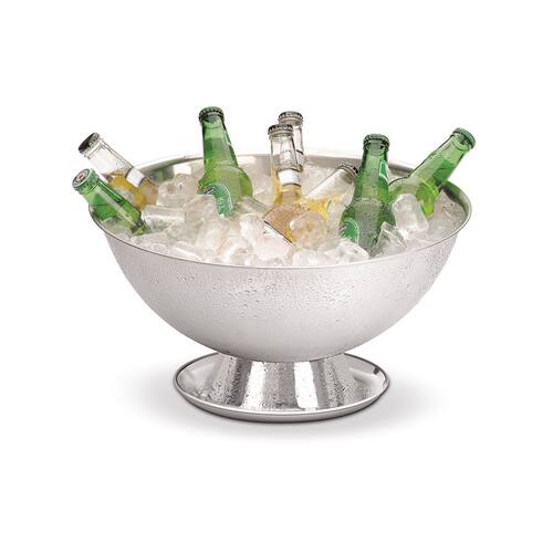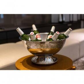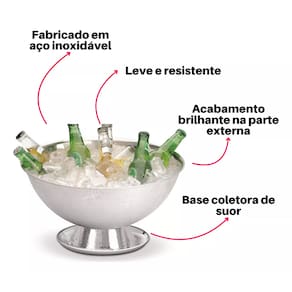 Muito prática, a peça acomoda bastante gelo e permite o repouso de variados tipos de bebidas, entre garrafas e latas, ou ainda apenas gelo para consumo. Possui formato redondo com belíssimo acabamento brilhante no lado externo e escovado na parte interna.