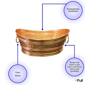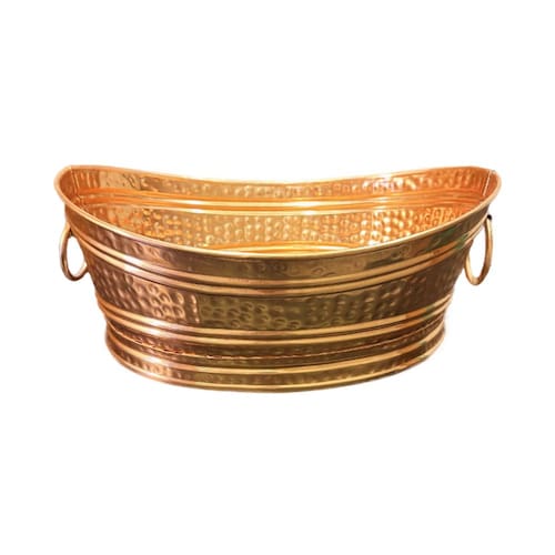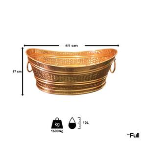 A fabricação à mão com cobre de alta qualidade, confere durabilidade e um acabamento impecável. O formato oval e as alças delicadas proporcionam um toque de charme clássico. Com 10 litros, é ideal para acomodar várias garrafas de champanhe, espumante vinho ou outras bebidas com gelo, mantendo-as na temperatura ideal durante todo o evento.