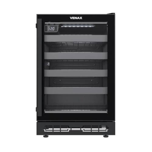 Tipo: Champanheira Controlador de Temperatura: Digital, Regulável(-2C a 8C) Iluminação Interna: LED Branco Porta: Vidro Duplo (LOW-E)com Perfil Slim Aquecimento da Porta: Sim Puxador da Porta: Alumínio Fechadura Na Porta: Não Abertura da Porta: Esquerda para Direita (Olhando de Frente) Trava de Abastecimento: Não Degelo: Natural Dreno: Traseiro Recipiente de Degelo: Sim Prateleiras: 4 Deslizantes e 1 Fixa Evaporador: Sem Ar Forçado Sistema de Refrigeração: Compressor Gás Refrigerante: R134a Pés: Frontais Reguláveis e Traseiros com Rolete Gabinete Interno: PSAI Gabinete Externo: Aço Revestido com Pintura Eletrostática Capacidade de Armazenamento: 24 Garrafas / Máx.90mm. Marca: Venax Tensão: 127 ou 220V Não é Bivolt (selecione na hora compra)