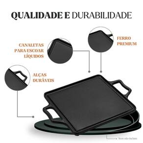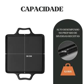 Modelo: Chapa Lisa Quadrada Alça de Ferro 30x30x3cm Material da peça: ferro fundido Material da alça: ferro Medidas: 30 × 30 × 3 cm Compatível com fogão: indução, gás, elétrico, vitrocerâmico, lenha, forno Já vai curada. Pronta para uso Revestimento atóxico camada protetora Garantia: 90 dias contra defeitos de fabricação A Chapa Lisa Quadrada Panela Mineira é ideal para grelhar carnes, legumes, hambúrgueres, peixes e uma variedade de alimentos com resultado profissional. O ferro fundido aquece de forma uniforme e mantém a temperatura por mais tempo, garantindo selagem perfeita e sabor realçado. Robusta e durável, é a escolha certa tanto para cozinhas profissionais quanto domésticas. Ideal para bares, hotéis, pousadas, restaurantes, buffets e também para o uso diário em casa. CONTEÚDO DA EMBALAGEM 1x Chapa Lisa Quadrada Alça de Ferro 30x30x3cm CUIDADOS APÓS O USO Lave com água e sabão neutro Seque ao fogo Aplique óleo em toda a superfície Guarde em local seco CURA DO PRODUTO Lave, remova oxidação se houver Seque ao fogo Aplique óleo Aqueça por 15 minutos Repita conforme necessário