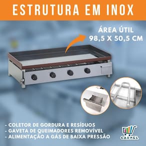 Possuiu estrutura em inox, com 4 queimador tubular em ferro fundido. Deste modo, poderá preparar deliciosas receitas e com Chapa Edanca.
