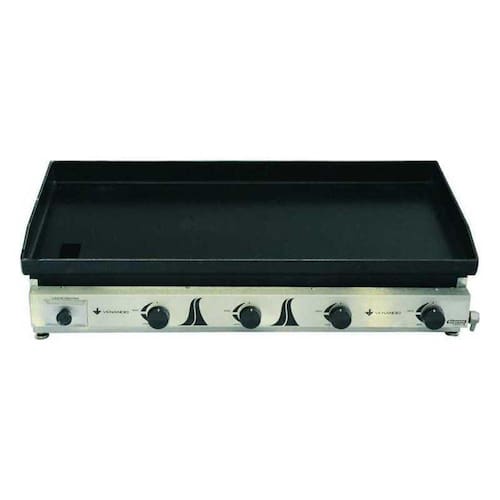 - Chapa superior em aço carbono com espessura de 1/4" (6,35mm); - Modelo a Gás GLP baixa pressão; - Queimadores bem distribuídos com sistema de gaveta posicionado abaixo da chapa; - Controle individual dos queimadores; - Manutenção simples e barata; - Corpo externo em aço inox 430; - Pés com regulagem de altura.