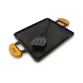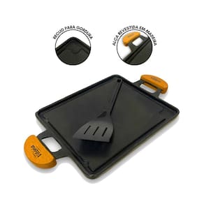 Uma chapa lisa é um utensílio de cozinha feito de alumínio fundido com uma camada de revestimento antiaderente aplicada em sua superfície. O alumínio é um material resistente, que possui excelente capacidade de condução de calor, permitindo que a chapa aqueça rapidamente e mantenha a temperatura de cozimento uniforme. A camada de revestimento antiaderente é aplicada na superfície da chapa para evitar que os alimentos grudem, permitindo um cozimento mais saudável e com menos adição de gordura. Ela é uma opção versátil e prática para cozinhar de forma rápida e saudável, proporcionando resultados saborosos e sem excesso de gordura.