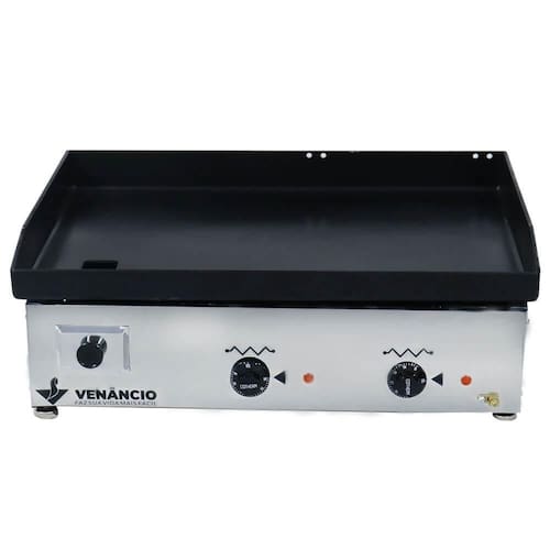 DETALHES - Equipamentos de acordo com a Portaria 371/09 do INMETRO, com selo de conformidade expedido pelo mesmo; - Chapa superior em aço carbono com espessura de 4mm; - Resistências bem distribuídas posicionadas abaixo da chapa para um aquecimento uniforme - Controle individual das resistências através de termostato, com temperatura de até 300C; - Modelos com resistência de 1800W; - Manutenção simples e barata; - Corpo externo em aco inox 430; - Pés com regulagem de altura; - Prensa adaptável (opcional);