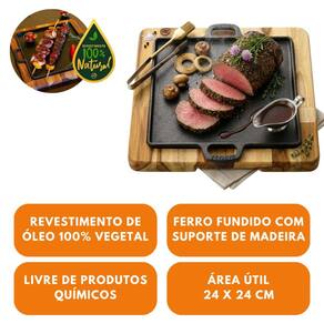 Chapa de Ferro Fundido 24x24 Com Suporte de Madeira Santana