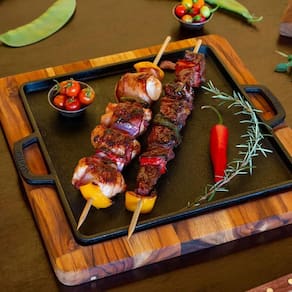 A Chapa de Ferro Fundido com Suporte de Madeira da Santana é um utensílio ideal para preparar e servir alimentos com praticidade e excelente apresentação. Muito utilizada em bares, restaurantes, lanchonetes, choperias, cozinhas industriais e também em ambientes residenciais, é perfeita para servir porções, petiscos, carnes e diversos outros alimentos.