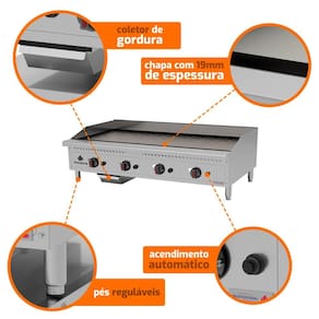 A chapa possui 19mm de espessura, o que garante maior durabilidade e retenção de calor, proporcionando um cozimento mais uniforme e eficiente dos alimentos.