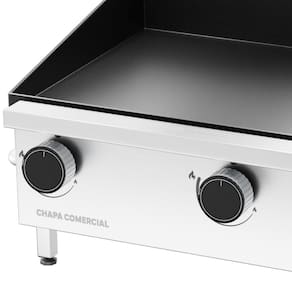 Construída com materiais de alta qualidade, esta chapa combina botões em alumínio para maior durabilidade, pés em perfil galvanizado soldado que garantem estabilidade e uma estrutura com 28,3 cm de altura que reduz significativamente a transferência de calor para a bancada. Com 5 mm de espessura na chapa para excelente retenção térmica e capacidade para produzir até 138 hambúrgueres por hora, ela é a solução perfeita para quem busca produtividade em espaços reduzidos.