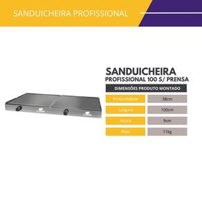 Chapa de Lanche Sanduicheira 100cm Sem Prensa FC2Ideal pra quem precisa de muito espaço e produtividade, a Sanduicheira SD-100 é perfeita para grandes volumes de preparo. Sem prensa, permite grelhar vários itens ao mesmo tempo, como hambúrgueres, carnes e pães, com rapidez e economia. Com 2 queimadores e estrutura em aço carbono, oferece robustez e durabilidade. A pintura eletrostática facilita a limpeza diária e garante mais resistência. Informações sobre o equipamento Peso: 11 kg Consumo de gás: 0,58 kg/h Quantidade de queimadores: 2 Tipo: Sanduicheira sem prensa Composição Material da estrutura: Aço carbono Material da prensa: Não possui Pintura: Eletrostática resistente Dimensões do equipamento Altura: 9 cm Largura: 100 cm Profundidade: 38 cm Dimensões com embalagem: Altura: 20 cm Largura: 110 cm Profundidade: 55 cm Peso com embalagem: 18 kgGarantia 3 Meses Contra Defeito de Fabricação.