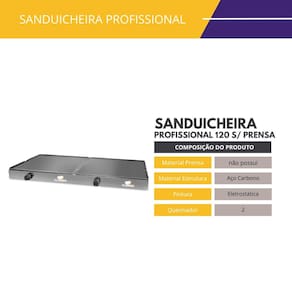 Chapa de Lanche Sanduicheira 120 cm Sem Prensa FC2 Se você precisa de uma chapa de lanche grande, resistente e com alto desempenho, a Sanduicheira 120 cm sem prensa da FC2 é a escolha certa. Ideal para lanchonetes, trailers, hamburguerias e cozinhas profissionais, ela oferece espaço de sobra e ótimo rendimento na produção diária. Com 2 queimadores potentes, estrutura em aço carbono e pintura eletrostática, essa sanduicheira garante aquecimento uniforme e preparo rápido de hambúrgueres, carnes, pães, ovos e porções. Seu tamanho de 120 cm de largura é perfeito para atender grande volume de pedidos com agilidade. Funciona a gás, tem baixo consumo e é fácil de instalar, usar e limpar. Um equipamento confiável, forte e pronto para o dia a dia pesado. Informações sobre o equipamento Peso: 10 kg Consumo de gás: 0,58 kg/h Quantidade de queimadores: 2 Tipo: Sanduicheira sem prensa Uso: Profissional, a gás Composição Material da estrutura: Aço carbono Material da prensa: Não possui Pintura: Eletrostática Dimensões do equipamento Altura: 9 cm Largura: 120 cm Profundidade: 38 cmGarantia3 Meses Contra Defeito de Fabricação.