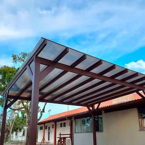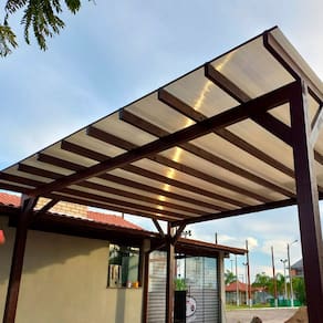 O Policarbonato Alveolar pode ser aplicado em pergolados/estruturas, claraboias, toldos, garagens, coberturas e fechamentos verticais. As chapas de 6mm são ideais para vãos de até 70cm entre os caibros/travessas da estrutura. Se o vão da sua estrutura for maior que 70cm, é recomendado o uso de uma chapa mais espessa.