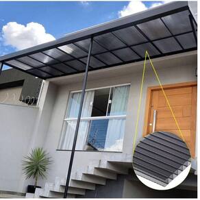 Título: Chapa de Policarbonato Alveolar Fume 4mm - 2,10m x 3,00m - ImportadoCor: Fumê: 20% de transmissão de luzPeso: 4.41 kgAcabamento: Translúcido