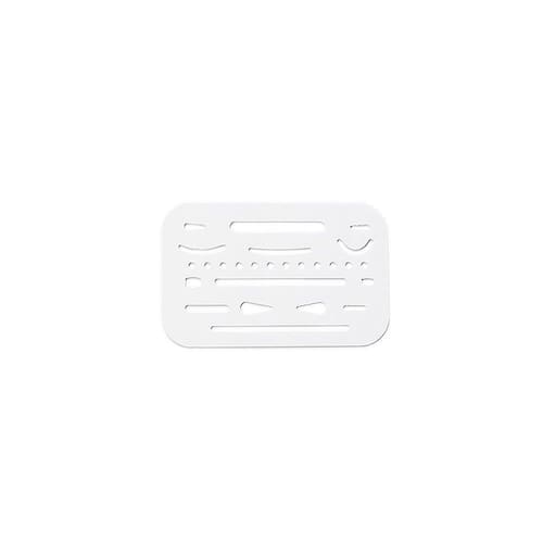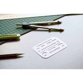 Gabarito de rasuras tipo mata gato para desenho técnico Características : Espessura : 0,3mm padrão desenho técnico Adicionas : sem chanfro e com marcações Marca : fenix