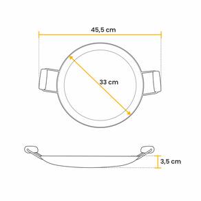 A chapa da renomada marca MK é perfeita para preparar uma variedade de pratos, como bifes suculentos, macarrão na chapa e muito mais. Fabricada em aço de alta qualidade, a peça conta com um acabamento liso que facilita a limpeza e a distribuição uniforme do calor, proporcionando um preparo eficiente dos alimentos. Sua coloração única, que varia entre o tom natural do aço queimado, confere um visual rústico e marcante, ideal para quem busca praticidade e estilo. O formato redondo da chapa oferece ampla área de cozimento, com um diâmetro total de 33 cm. Entre os puxadores, o diâmetro é de 45,5 cm, garantindo um manuseio seguro e confortável. A altura da chapa de 3,5 cm, contribui para reter o calor e facilitar o preparo de diversos tipos de alimentos.