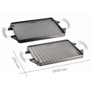 A Chapa Dupla Face Retangular Alça Espiral da Panela Mineira possui um design autêntico, com um dos lados liso e o outro estriado. Ideal para preparar carnes, legumes, peixes e outros pratos, de maneira prática e eficiente, em qualquer uma de suas faces. Sua excelente distribuição e retenção de calor, característico do ferro fundido, mantém os alimentos aquecidos por muito mais tempo, além de enaltecer seus sabores e aromas. Pode ser utilizada diretamente sobre todas as fontes de calor, assim como churrasqueiras.