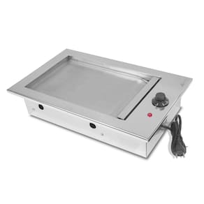 Chapa gourmet elétrica de embutir 32x50 cm em aço inox 304 com coletor de gordura removível, potência de 1500W e aquecimento rápido. Ideal para cozinhas e áreas gourmet.Vendido e entregue por Requinte lazer