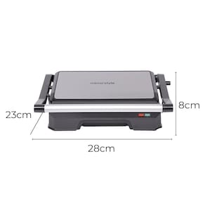 Marca: MimoStyle Modelo: 9900(110V) 9901(220V) Altura: 8 cm Largura: 23 cm Comprimento: 28 cm Peso: 1980 g Potência: 850W Material: Inox e Plástico
