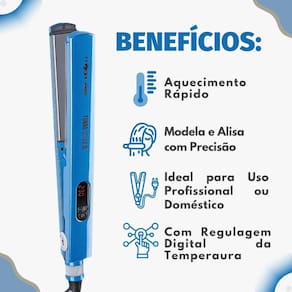 Temperatura máxima de 230C para resultados profissionais e duradouros em diversos tipos de cabelo.