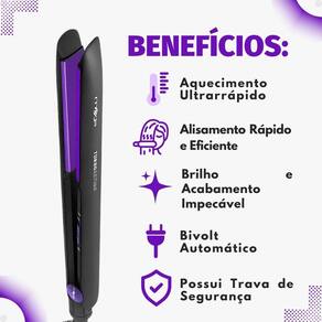 Temperatura de 230C: Garante um alisamento rápido e eficaz, ideal para resultados duradouros.