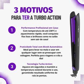 Tecnologia Turbo Action: Desenvolvida para um aquecimento rápido e desempenho ágil, otimizando seu tempo de estilização.