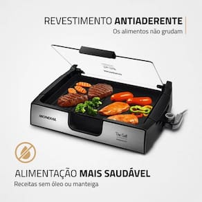 Prepare receitas mais saborosas e saudáveis com o Due Grill Inox Premium G-10 Mondial. Composto por chapa lisa e grill, permite o preparo de diversos tipos de pratos, e por ter revestimento antiaderente, não precisa adicionar óleo ou manteiga. Conta com peças removíveis que facilitam a limpeza, controle de temperatura e tampa de vidro temperado, que colabora com a preparação e é mais resistente.