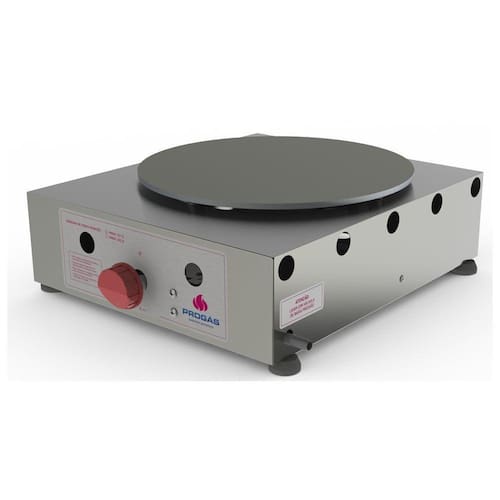 A Chapa para crepe é recomendada para fazer crepe francês, sendo esse o modelo a gás com consumo médio de 0,18 kg/h e queimadores de 100 mm em ferro fundido.