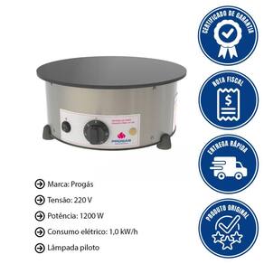 CHAPA PARA CREPE FRANCÊS REDONDA PROGÁS ELÉTRICA 220V COM TERMOSTATO PRKF-101 ER - P37612 Marca: Progás Modelo: PRKF-101 ER Redonda Elétrica 220V
