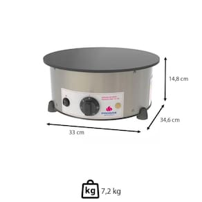 DESCRIÇÃO DA CHAPA PARA CREPE REDONDA ELÉTRICA - A PRKF-101 ER tem novo designer pensado em facilitar o manuseio e a limpeza; - Além disso, possui chapa exclusiva com acabamento esmaltado e diâmetro de 328mm; - Chapa quente esmaltada; - Aço inox escovado; - Resistência blindada 1200 W; - Termostato regulador; - Lâmpada piloto.