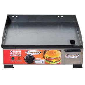 É indicada para ser utilizada em lanchonetes, bares, restaurantes, padarias, hamburguerias, quiosques, áreas de lazer, chácaras e muitos mais! Esta chapa elétrica profissional possui estrutura confeccionada em aço inox 430 e sua chapa superior em aço carbono com espessura 3,1mm, proporcionando muito mais robustez e durabilidade ao equipamento. Conta com uma gaveta de óleo removível, tornando a limpeza rápida e fácil, além de um termostato que vai de 50 a 200C para que você possa controlar a temperatura conforte a sua necessidade.
