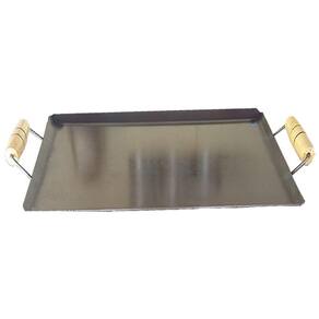 Chapa em aço carbono altamente resistente. Alças com acabamento em madeira. Ideal para fogões industriais de 2 bocas e fogões de cozinha de 4 bocas. Dimensões: 22 cm de comprimento x 42 cm de largura. Espessura de 2 milímetros. Descrição: Agora fazer lanches, bifes na chapa, pães com manteiga, etc ficou muito fácil Fácil de usar e de limpar. Ideal para ranchos, apartamentos, casas, Camping, etc. Atenção: O produto vem de fábrica embebido com óleo natural para conservar em estoque. Facilmente retirado com água e detergente. Para preservação do produto, aconselhamos após o uso, lavar e enxugar bem antes de guardar. Não é Anti Aderente.