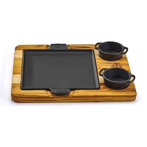 O Conjunto Chapa Petisco Quadrada da Panela Mineira é um produto moderno, prático e eficiente, que apresenta alto desempenho no preparo de diversas receitas. Ideal para preparar, fritar, selar e grelhar carnes. Acompanha suporte de madeira para dar mais charme a sua peça. Sua excelente distribuição e retenção de calor, característico do ferro fundido, mantém os alimentos aquecidos por muito mais tempo, além de enaltecer seus sabores e aromas. Muito utilizada por bares e restaurantes para servir porções devido a sua resistência, boa apresentação e por manter-se quente por mais tempo. A molheira de ferro fundido mantém molhos quentes por mais tempo, distribuindo o calor de forma uniforme e acrescentando um toque rústico à mesa. Ideal para molhos densos e caldos.