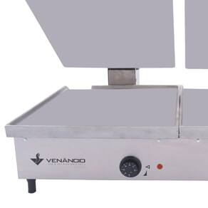 A Chapa Sanduicheira Elétrica Conjugada Venâncio de 90 cm com 2 prensas é a escolha perfeita para estabelecimentos que buscam praticidade e eficiência no preparo de sanduíches e grelhados. Com chapa em alumínio fundido e estrutura robusta em aço inoxidável, essa sanduicheira proporciona aquecimento uniforme, garantindo o preparo rápido e preciso de alimentos. Ideal para lanchonetes, restaurantes e food trucks, ela combina potência e durabilidade para atender grandes volumes de produção.