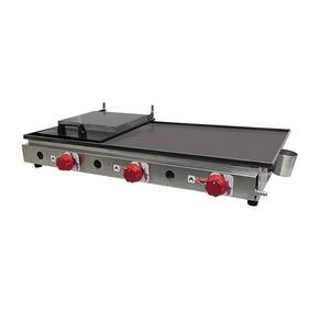 Conta com escorredor de gordura, 3 queimadora tubular e pés de borracha.