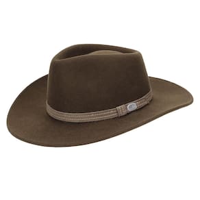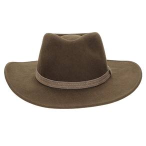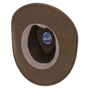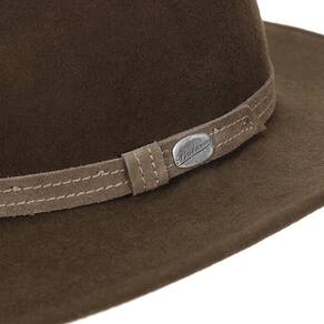Chapéu Pralana modelo Alabama fabricado em feltro na cor Café, possui copa de 11cm e aba de 8cm, bandinha em material sintético com boton e carneira de elástico.