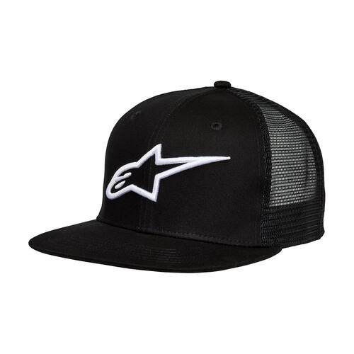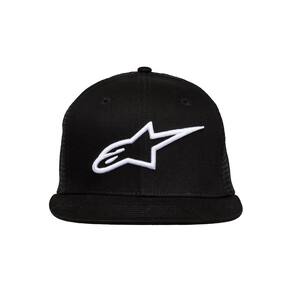 Alpinestars Boné masculino Corp Trucker Snapback, preto/preto, tamanho único, Preto/preto - ALPINESTARS boné cropped trucker - Caminhoneiro de aba plana com coroa estruturada - Fecho ajustável na parte de trás - Frente principal de sarja, tecido traseiro de malha - Logotipo bordado plano