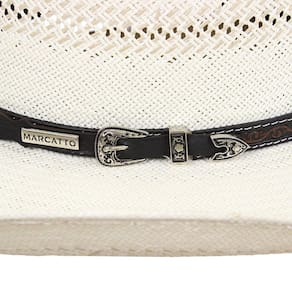 O Chapéu modelo 30X da marca Marcatto é um acessório de moda elegante e rústico, feito com materiais naturais de alta qualidade. Com um design clássico de chapéu country, ele apresenta uma aba 10,5cm e uma copa acentada 12cm, uma faixa de couro trabalhada que adiciona um toque de rusticidade ao visual. Além de ser um item de moda sofisticado,também é altamente funcional, protegendo seu rosto e cabeça dos raios solares e vento. Ideal para eventos ao ar livre, passeios no campo ou para complementar um traje mais casual, este chapéu é uma escolha versátil e elegante. Seja para um visual descontraído ou rústico, ele é uma escolha perfeita para quem busca estilo e conforto no verão.
