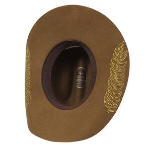 O Chapéu modelo Americano da Mundial é feito de um feltro de alta qualidade, o que o torna durável e resistente às intempéries. Ele apresenta uma aba de 10cm e topo quadrado de 11cm, característicos dos chapéus. A parte interna possui uma faixa de elástico, que ajuda a manter a cabeça no lugar. O chapéu também é decorado com uma bandinha de couro customizada com strass, as abas também são personalizadas com strass, o que adiciona um toque elegante e sofisticado ao design rústico. Com sua combinação de estilo e funcionalidade, este chapéu é a escolha perfeita para cowgirls que buscam uma peça clássica e atemporal para complementar seu visual country.