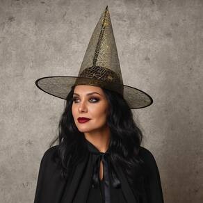 Chapéu de Bruxa com Teia - Acessório elegante e temático para fantasias de Halloween. Produzido em tecido leve e translúcido, com acabamento de aranha e teias em detalhes dourados, garantindo um visual sofisticado e chamativo. Ideal para festas, eventos temáticos e apresentações, proporcionando conforto e estilo durante o uso. Marca: Não Informado Ean: 7898181038812