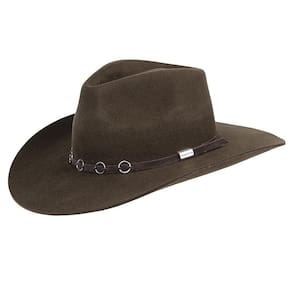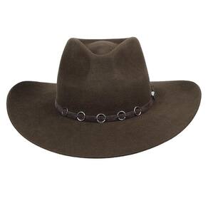 Chapéu Marcatto modelo Muladeiro Cavalgada fabricado em Feltro na cor Marrom, possui copa de 10,5cm e aba de 9cm, bandinha de material sintético com boton e argolas de metal e carneira de elástico.
