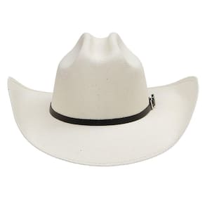 Chapéu Mundial modelo Americano fabricado em Fibra Têxtil na cor Branca, possui aba de 10cm de copa tradicional de 10cm, bandinha de material sintético com fivela e carneira de elástico.