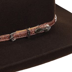 O Chapéu Country da marca Cury é feito de um feltro de alta qualidade, o que o torna durável e resistente às intempéries. Com uma cor Chocolate, ele apresenta uma aba de 10cm e topo acentado de 12cm, característicos dos chapéus country. A parte interna possui uma faixa de couro, que ajuda a manter a cabeça no lugar e forro que proporciona maior conforto para quem usa. O chapéu também é decorado com uma bandinha customizada em material sintetico, com um detalhe metálico na lateral, o que adiciona um toque elegante e sofisticado ao design rústico. Com sua combinação de estilo e funcionalidade, este chapéu é a escolha perfeita para cowboys e cowgirls que buscam uma peça clássica e atemporal para complementar seu visual country.
