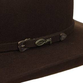O Chapéu Country da marca Cury é feito de um feltro de alta qualidade, o que o torna durável e resistente às intempéries. Com uma cor Chocolate, ele apresenta uma aba larga de 10cm e topo acentado de 12cm, característicos dos chapéus country. A parte interna possui uma faixa de couro, que ajuda a manter a cabeça no lugar. O chapéu também é decorado com uma bandinha customizada em couro marrom escuro, com um detalhe metálico na lateral, o que adiciona um toque elegante e sofisticado ao design rústico. Com sua combinação de estilo e funcionalidade, este chapéu é a escolha perfeita para cowboys e cowgirls que buscam uma peça clássica e atemporal para complementar seu visual country.