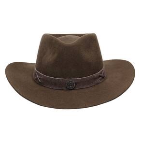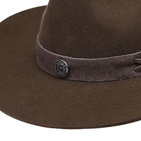 Chapéu Marcatto fabricado em Feltro na cor Marrom, possui aba de 7,5cm e copa social de 11cm, bandinha de material sintético com detalhe em margarida e nó na parte detrás e carneira de elástico.