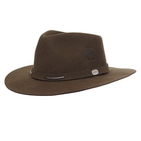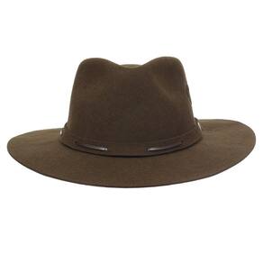 Chapéu Pralana modelo Truco fabricado em Feltro na cor Café, possui aba de 7cm de copa social de 10,5cm, bandinha de feltro com boton de metal e carneira de elástico.