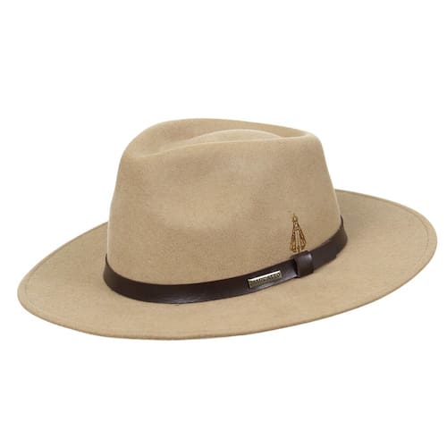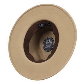 Chapéu Marcatto modelo Cavalgada fabricado em Feltro na cor Caramelo, possui copa de 10,5cm e aba de 6,5cm, bandinha de material sintético com boton, detalhe da imagem de Nossa Senhora Aparecida gravado à laser na lateral e carneira de elástico.