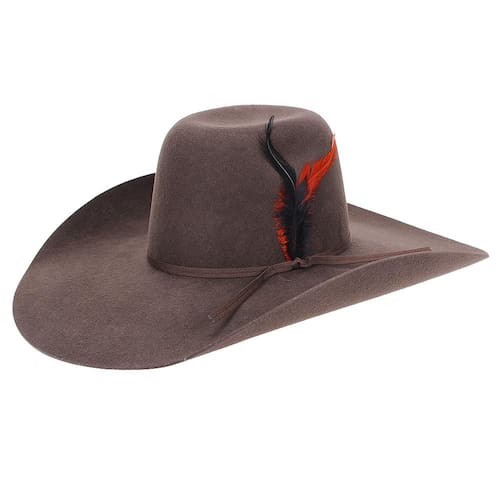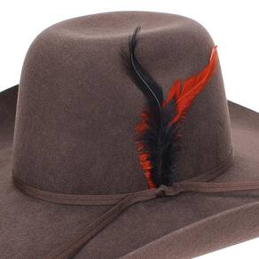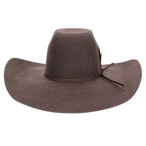 Chapéu Pralana 30X fabricado em feltro na cor Marrom, possui copa forrada internamente de 12,5cm e aba larga de 13cm, bandinha de fita de nylon com detalhe em penas e carneira de recouro.